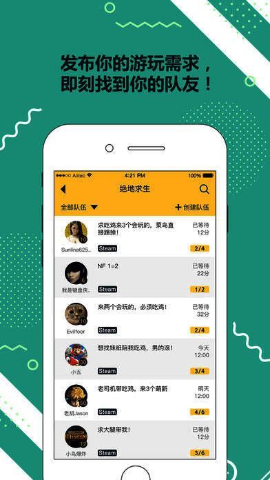 随时随地在PC,主机,手游的联机游戏找到队友,想玩的时候就有人陪你玩!