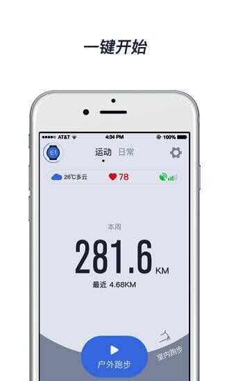 2、【一键运动】启动应用自动连接装备,一键开始运动;
