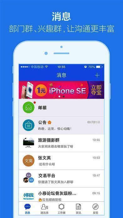 小移人家是一款企业沟通协作平台,为大型企业员工提供即时消息、企业邮箱、通讯录、工作圈、公告、电话会议、鸡毛信等一体化交流沟通、办公协作服务,是企业的宣传阵地、交流平台、学习园地和办公工具。