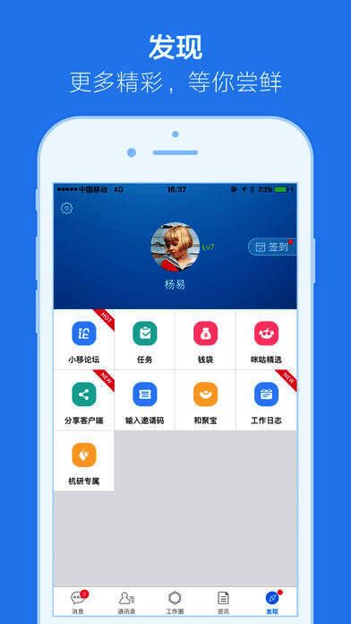 《小移人家》是一个企业沟通协作的平台。本平台为企业员工提供一个即时交流的平台,帮助用户更好的进行内部的交流与合作,帮助员工之间进行内部的无缝合作、学习,并且支持员工分享工作动态,大大提高了员工的工作效率。