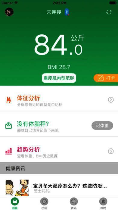 通过蓝牙智能硬件测量用户健康数据,并生成健康数据分析报告,支持健康报告等功能;