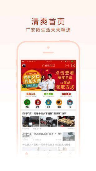 广安微生活app是一款广安本地生活服务应用,涵盖广安本地吃喝玩乐购等方面,提供全方位的生活信息,还可以随时随地在线交友,让广安人的生活变得更丰富。提供广安新闻资讯、吃喝玩乐美食推荐、公交查询、房屋租售、同城交友等丰富功能的手机客户端 广安微生活花了2年时间打造了广安影响力最大的自媒体平台,总用户数已经超过20万,现在广安微生活将投入全部精力为广安市民打造一款功能更加全面的APP。下载广安微生活APP帮你快速发现一个更加精彩的生活方式。