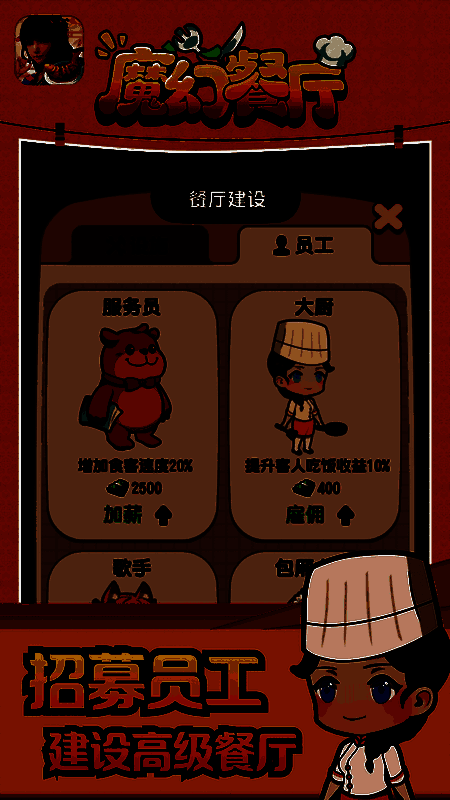 使用最合适的商业策略来经营一家神奇的餐厅,并为玩家带来一种新的模拟经营方法。