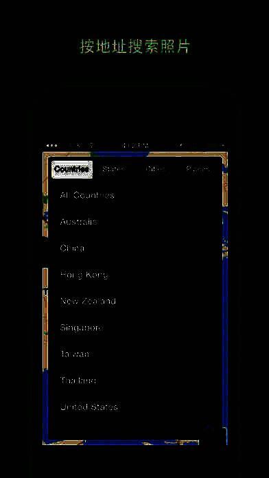 3、APP自动将所有照片的GPS位置信息提取后,分类为国家,省份,城市和地点;