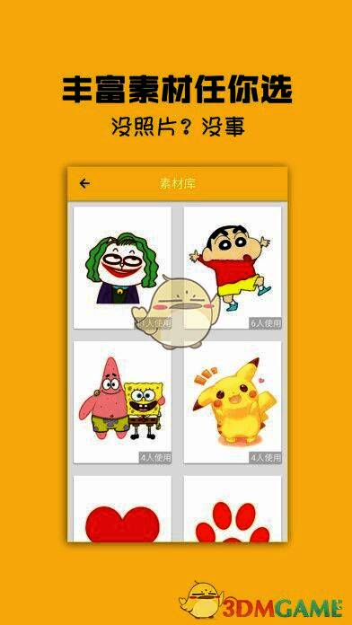 5、这里拥有丰富的素材任你挑选,海绵宝宝、皮卡丘、小新都有;