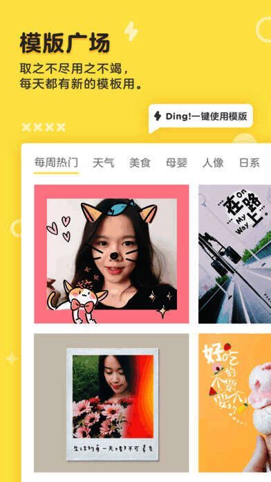 拍照或导入照片之后,从模板编辑页面编辑。可以选择套用不同的官方模板,双击文字可以修改文字内容,也可以点击「编辑模板」做更多修改,想要完全自我发挥可以直接「新建模板」。