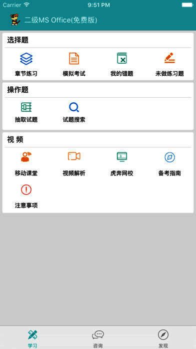 《虎奔等考》是一个手机端的计算机等级考试模拟应用。本软件可以为用户提供全科目的选择题和操作题的真题考库,帮助考生更加高效的进行考试备战,助理考生高效、轻松的通过计算机等级考试。