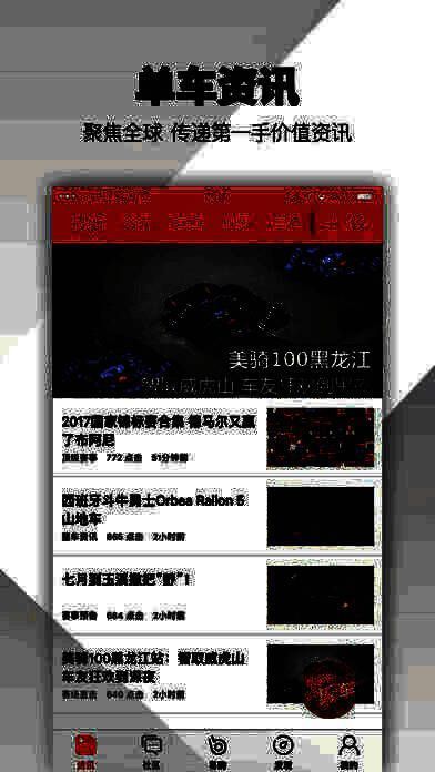 将自行车资讯,产品,车店,赛事,旅行,图片,视频,户外保险等众多内容,依据车友的阅读喜好,和使用习惯融合到一起,给车友实现全方位立体化的服务。