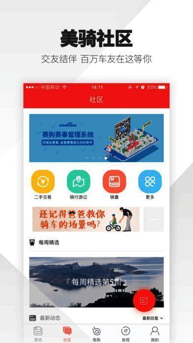 美骑APP汇聚前沿自行车资讯,产品装备评测,提供从选车,购车,到骑行再到参加自行车车赛,车友社群 交流多元化单车服务平台。