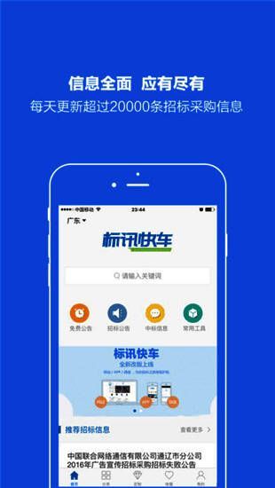 中国比地招标网旗下移动端应用-标讯快车——招投标信息服务平台,汇聚全国招标信息、在建项目、工程项目等招标采购信息,根据您的企业资质定制项目信息,降低选项目的时间提高工作效能,成为您招标采购的好帮手。