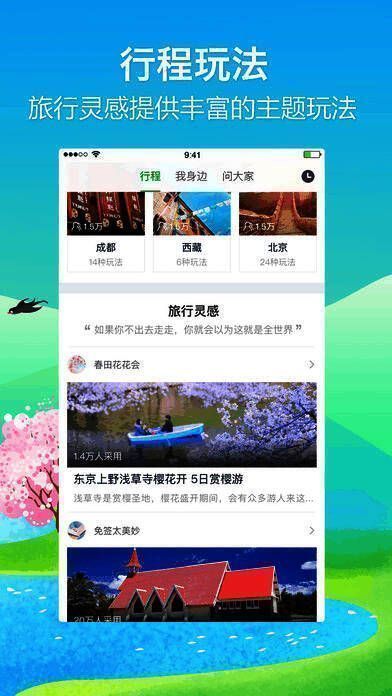 6、【行程玩法】新增旅行灵感,精心为您推荐当季热门玩法,多种主题任您挑选。