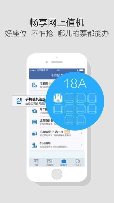 无需去机场排队,通过手机值机就可以占个好座位;
