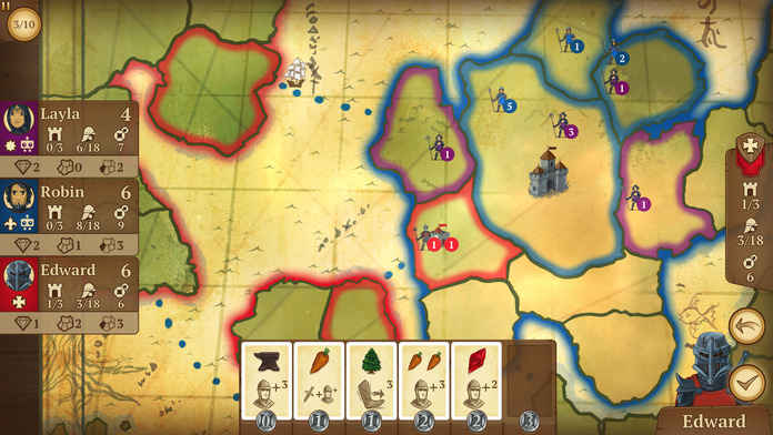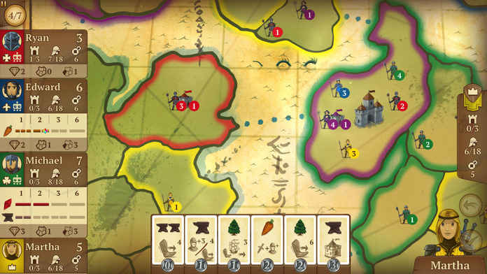 该作的玩法程序十分简单,你与其他4名玩家将从展示好的6张卡牌中选择,每一张卡会给予资源,并强制你采取行动。比如说,“行动”让你征服土地,“资源”则是最后决定胜负的累积点数。因此,你必须多加思索当下到底什么政策最适合帝国发展,获得的土地越多,你最后获得的点数就越多。《八分钟帝国》设置了三个等级的AI,并提供多人在线对战模式(包括异步交流与同步交流),所以可供选择的玩法多样。