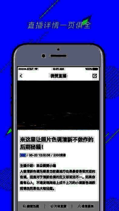 由微信app推出一款视频直播软件!《微赞直播》为你提供最优质的直播节目,让你在生活压力之下有一个可以让自己放松之处,是你首选的娱乐视频收视平台!