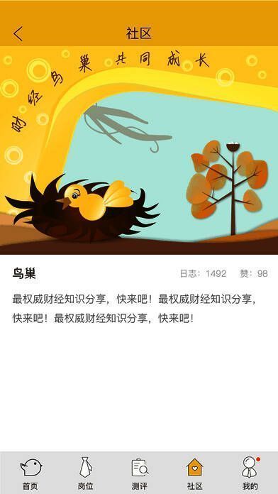 想去金融机构实习么?那就上《菜鸟帮帮》线了解行情,并学习如何做到可在金融机构生存的法则吧,这款软件汇集了互联网金融行业的许多老大,这里也可以是你的人生转折点,在这里你会很快的知道自己的目标。