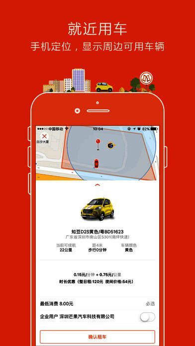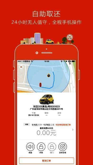 【取车只需步行5分钟】数百个取车网点,打开APP,就近下单;