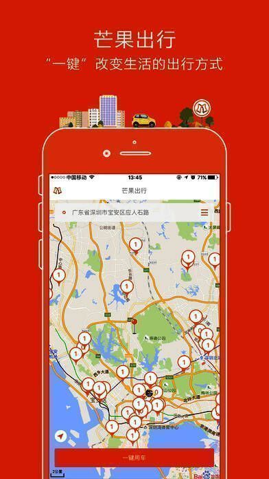 旅行出差还在打车或坐公交?下载《芒果出行》让自己成为有车一族!打开手机就可查看自己周边可用车辆,手机扫描一下就可开走车辆,让你尽享生活便捷服务!