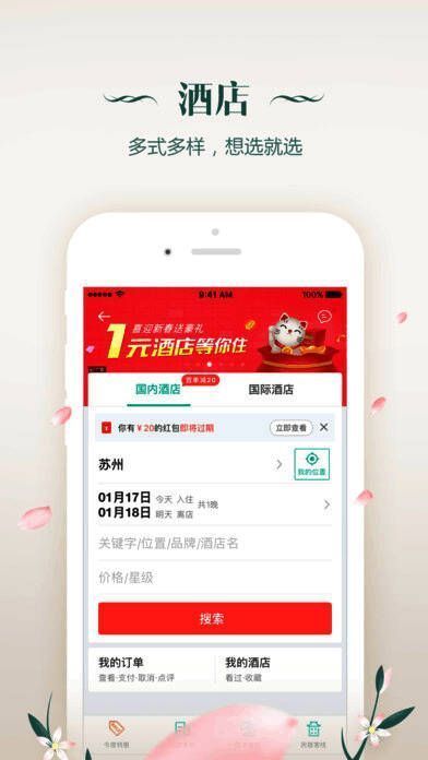 3、酒店:国内及港澳4万余家酒店预订,海量酒店房型照片以及真实住客的点评,入住发点评赢奖金,手机预订返得更多;