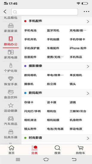 左侧不同的分类,帮你快速查找商品