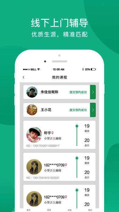 1、找老师:选择[科目、年级、上课地址、日期手机号,教师级别],即可预约上课老师;