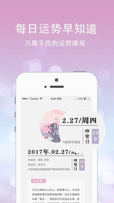 1、每日运势播报早知道,在对的时间做对的事情,配合吉位保证让你事半功倍;