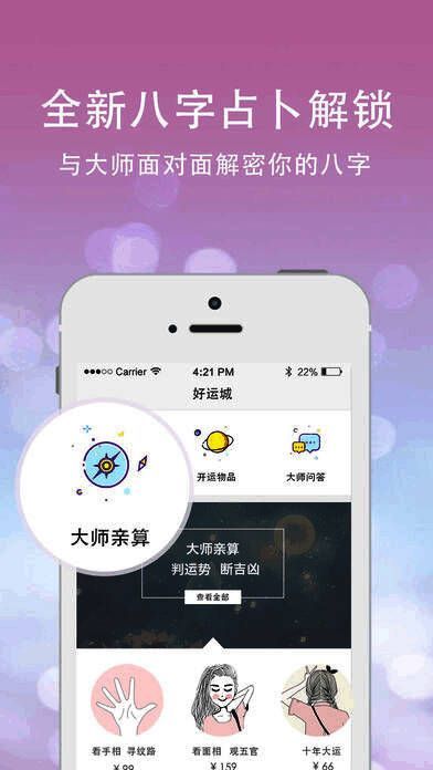 《口袋神婆》为你提供精确的算命服务,是你预测命运的首选手机约了APP!在这里你不仅能预测你自己的命运还可以预测你的感情和财富运势,感觉还不错的话就下载软件开始使用吧!