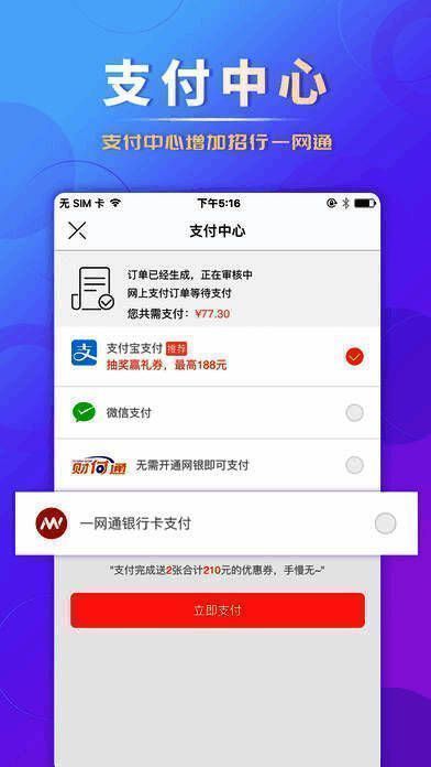 2、支付的时候你会发现“招行一网通”,又多了一个选择,帅不帅?