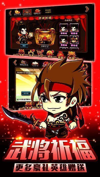 画面非常精致的多人在线三国RPG手游,超爽的福利登录送传奇的武将,历史的硝烟再次浮现,随心搭配的阵容系统,组建属于你的最强战斗,丰富的排兵布阵带你领略全新的战斗体验。