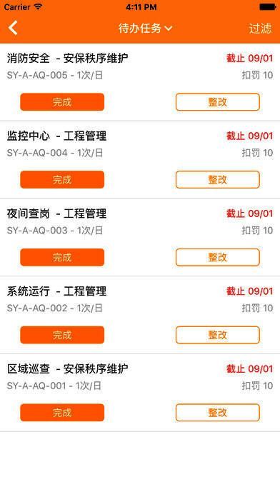 1、核查管理:针对不同的岗位生成待办任务,用户可以APP端一键完成或整改,并可查看该任务在不同时期的任务状态;
