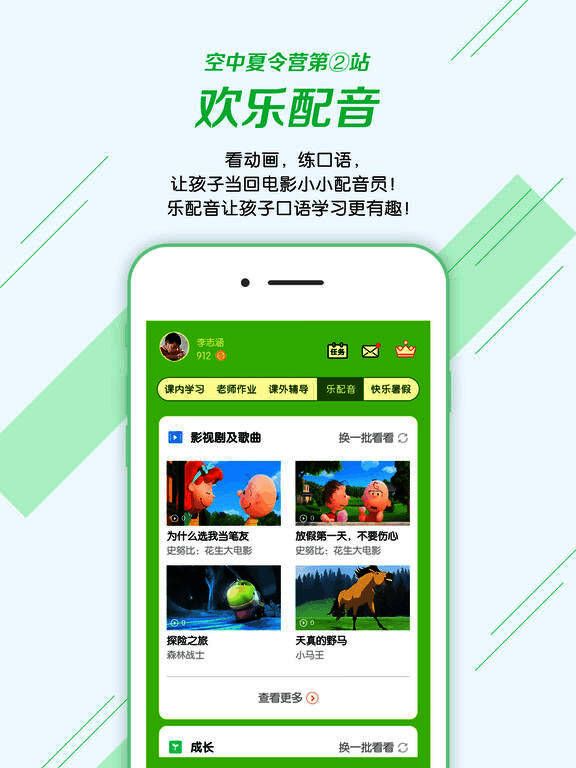 3、新增空中夏令营之欢乐配音活动,欢乐配音让你成为心仪动画片的小小配音员