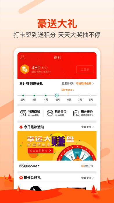 签到打卡赚积分,海量超值礼品,劲爆夺宝活动,优惠福利让你兑到手软