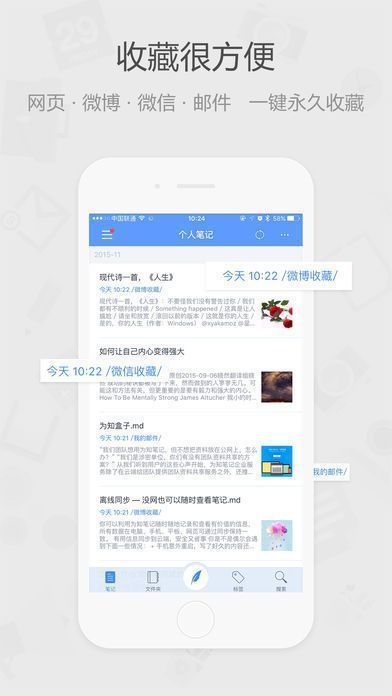 《为知笔记》为你提供专业的效率工具服务,这款软件不仅能为你提供便捷的文件共享功能,还可以用来记录你的日常生活和日记,是你不容错过的手机办公APP!