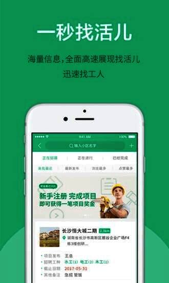 3、一秒找活儿:海量信息,全面高速展开现找活儿,迅速找工人;