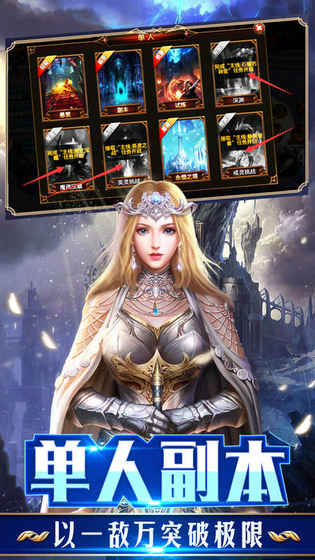 封魔塔、异界战场、圣域争夺战、跨服地牢、千人混战等多种激情战斗副本,物品超高几率掉落,热血沸腾,杀boss爆神装;