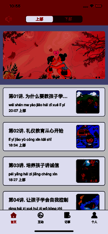 1、育儿教育内极简的界面设计带给用户一个干净舒适的使用体验。