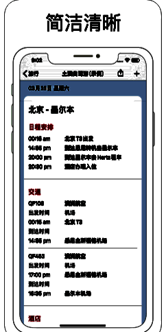 2、可以记录的内容包含日程安排,交通出行,酒店预订等;
