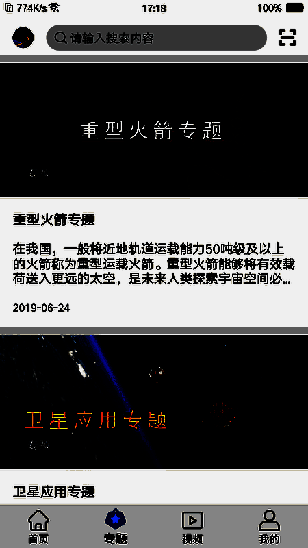 科普航天是一款由中国宇航出版有限责任公司推出的一款产品,该产品主要针对航天科普内容归纳而开发,可以给用户提供一个学习科学、更加权威、更加精确的航天科普信息内容的平台,在程序中,会有头条更新,每天出现的新闻内容,用户还可以通过改应用程序每天观看新闻以及国家在航空航天的相关消息,航天器、火箭、宇宙、只要关于航空相关的,多可以通过该平台进行查询;直播面板、各类精彩的专题、更多的个人中心应有尽有,可以通过我的关注以及兴趣收藏夹查看到用户收藏的信息。实用又快捷,需要的用户可以下载体验。