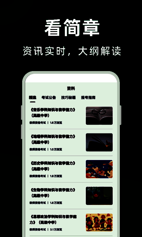 1、实时更新的资讯信息,你可以随时观看简章数据,感受大纲解读服务;