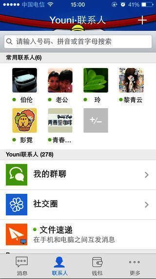 有你短信手机版是一款基于手机通讯录,跨平台、跨网络、跨运营商,且具有移动支付功能的社交工具,支持通过手机网络发送文字、图片、语音及短视频。您可以通过Youni有你与手机通讯录中的Youni联系人随时随地发送消息,甚至发钱。