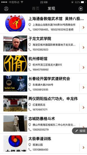 4、在此可以寻找功夫培训机构,定位自己的城市即可寻找本地场馆,在线可以查看各个场馆的详细信息,能过为选择场馆而提供信息服务。