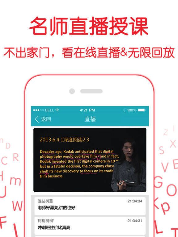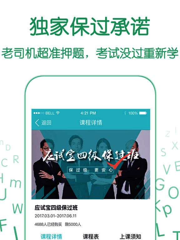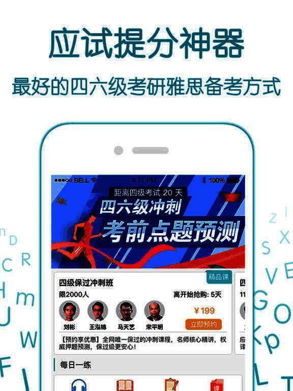 《应试宝》是最专业高效的大学英语四级英语六级、考研、雅思备考学习产品,为千万考生提供了完整高效的在线直播课程、题库配套练习、单词背诵讲解等多种提分方式,帮助考生轻松攻克难点弱项。