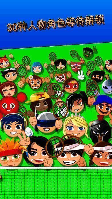 共有四种游戏模式,它们分别是单人游戏模式、多人游戏模式、比赛模式——砰砰大满贯和街机模式。可解锁30多种人物角色,其中包括特殊的老板角色。再接再厉去赢得砰砰大满贯吧!或者转至街机模式,挑战最终对决中的老板角色。可在一台设备上玩双人模式,挑战朋友,共同度过几小时的网球扣球欢乐时光。简单易操作的控制键让这款网球游戏变得既有趣好玩又精彩刺激。