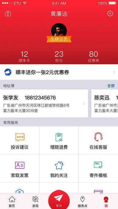 6、GPS地址定位、账户管理、寄件草稿箱,让您寄件更智能。
