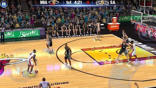 体育运动类游戏熟悉的控制系统,允许玩家围绕屏幕移动,弧线投篮。