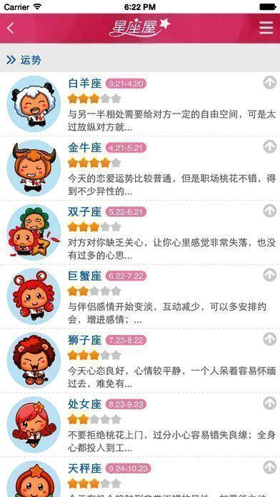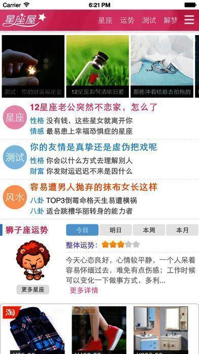 2、星座:爱情、性格、时尚、情感、开运、知识,各种有趣星座话题每天精彩上线;