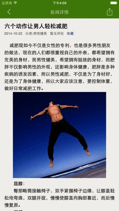 4、男性健美:现在上班的人群压力都比较大,而工作也是比较忙的,而每天脑力劳动多了,就要运动,劳逸结合才能保证自己的身体健康,职场男性应该多锻炼身体,现在的上班族很多都缺乏锻炼,而且是处于亚健康状态,我们为你提供了适合职场男性的健美方法,男性朋友应该看一看,通过身体锻炼,让身体健康,这样工作起来也有精力。