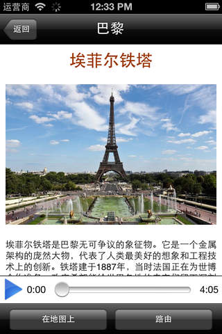 3、本产品为所有景点提供了详细的介绍,由专业人士录音讲述,并伴有相应照片;