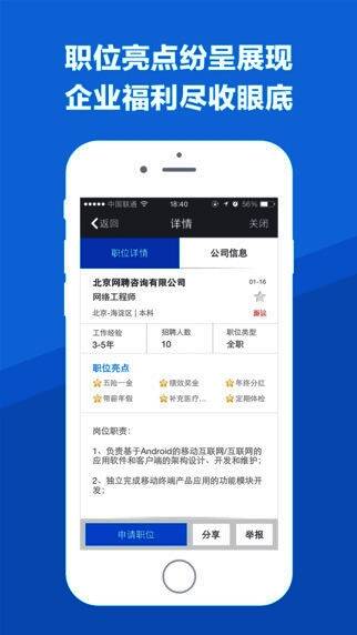 智联在手,工作我有!史上更难就业季,智联招聘依然给力!海量最新最真实的工作机会随时投递,理想职位分分钟到碗里!手机上智联,求职超方便,靠谱工作随“薪”选!