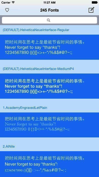 提供了系统内置所有字体的浏览,您可以自定义预览文字内容、字体颜色、字体大小、背景色,收藏喜欢的字体和查看最受欢迎的字体。