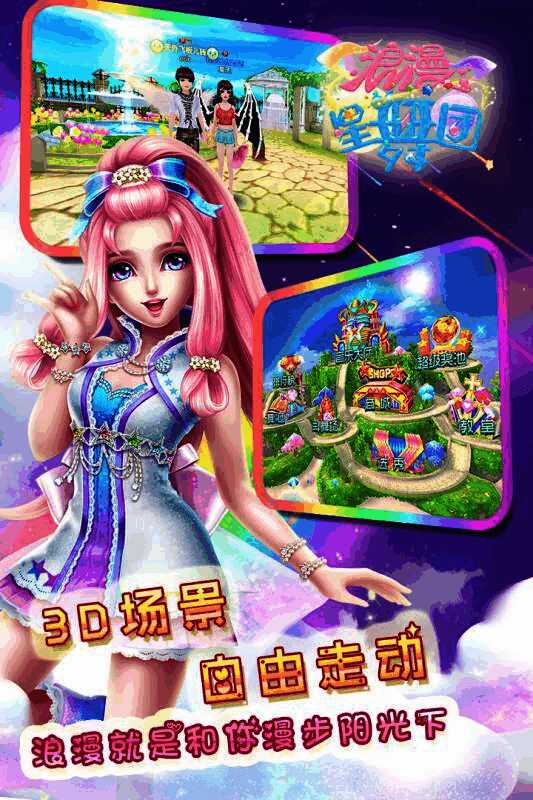 2、自由行动的真3D场景,每一个浪漫角落都可以留下你和他的秀恩爱的身影,不止在地面,更可以自由的飞翔,在天空展示出你们的浪漫